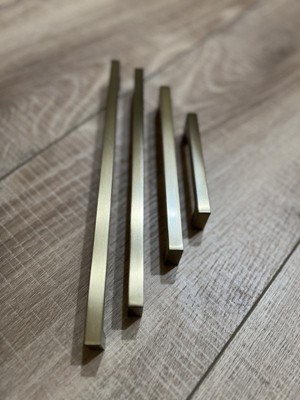 [This review was collected as part of a promotion.] I love this cabinet pull because is has a minimal clean look. The gold is a soft gold. The price is good considering the length of the pull. Big pulls add design and a punch that elevates the project.
