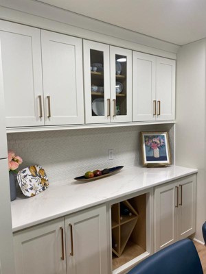 [This review was collected as part of a promotion.] Same pulls and knobs work for our two different cabinet colors and manages to be both eye catching and subtle. Bonus they are easy to clean.