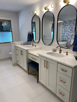 - Complete the look with matching cabinet knobs, drawer pulls and bath hardware from the Amerock Monument collection