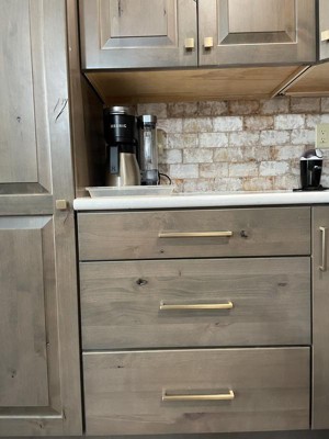 Classy cabinet pull that has a nice weight to it while also maintaining a clean look. Similar to other more pricey hardware options that I was considering. These look beautiful with my white cabinets as well as the Web Gray island.