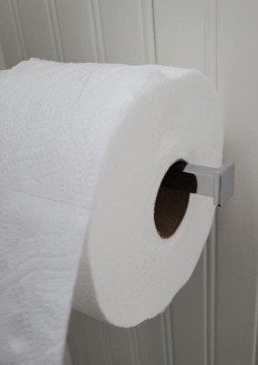 [This review was collected as part of a promotion.] This chrome toilet paper holder is a good balance of contemporary and transitional that I have used to decorate my bathroom. This was super quick to install and looks great. Win win.