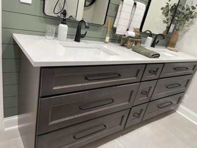 - Complete the look with matching cabinet knobs, drawer pulls and bath hardware from the Amerock Renown collection
