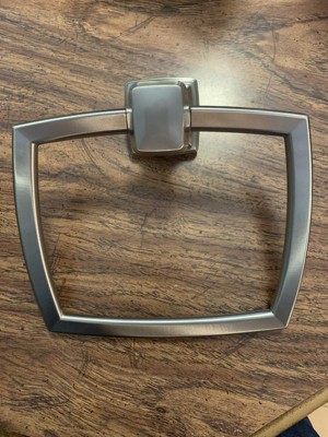 [This review was collected as part of a promotion.] I received a Wall Mounted Towel Ring brushed nickel color by Amerock. Very attractive design. Tasteful oversize/chunky design, clean geometric and quality material. Easy to mount and looks great with the calm clean color. Great for extra plush hand towels !