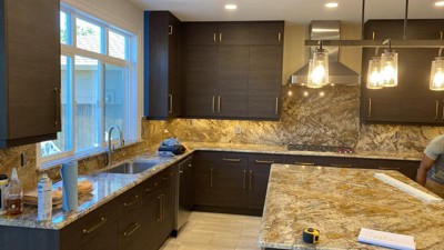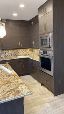 Beautiful Champagne brass pulls used in a white kitchen with Taj Majal Quartzite. Feel solid and great quality for price.