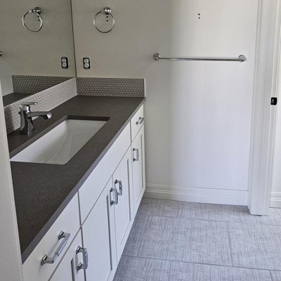 - Complete the look with matching cabinet knobs, drawer pulls and bath hardware from the Amerock Stature collection