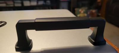 [This review was collected as part of a promotion.] I love this cabinet pull. It is so stylish and was super easy to install. Looks so good on my kitchen drawer. I really love the Amerock brand. All of their products are so stylish and easy to install. They have something for every type of decor and style. Everything that I needed was included in the package. Pretty matte black finish and smooth handle with a center grip that makes it easy to open.