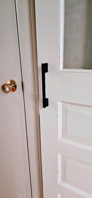 [This review was collected as part of a promotion.] I love the black & sleek look of the handle. It adds the perfect touch to my older ranch style home. It feels & looks nice. I have no worries that it won't hold up. I'm not super tool handy, so this was a little bit of a task for me, but I got it. Just double-check your markings before you drill the holes. But putting the actual handle on itself was a breeze.