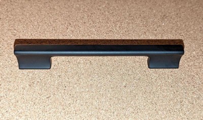[This review was collected as part of a promotion.] I like this Amerock Status Center-to-Center Pull in matte black because the overall look is sleek, with smooth curves and edges. It can fit in well with a transitional design aesthetic. Four screws are included, two that are one inch long, and two that are one and a half inch long. The size/length is perfect for me (I have larger hands for a woman). I attached it to a large silverware drawer that's heavy and so far, so good! The main downside is, that due to the flat exterior surface, you can easily notice fingerprints and smudges on this pull.