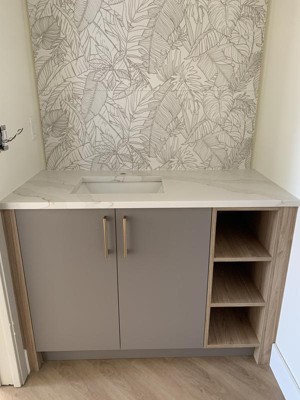 Champagne bronze Versa is just right for my project! This hardware met the needs of my client with substantial space to fit larger hands, ADA compliance for ease of use, and is a beautiful complement to light wood cabinetry.