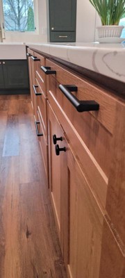 [This review was collected as part of a promotion.] We used the pulls in 3 colors (chrome, black, champagne bronze) to finish a modern looking kitchen & baths. These were attractive & the longer, sleek lines fit the cabinet perfectly.