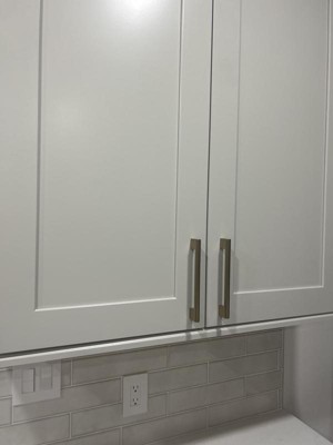 Champagne bronze Versa is just right for my project! This hardware met the needs of my client with substantial space to fit larger hands, ADA compliance for ease of use, and is a beautiful complement to light wood cabinetry.