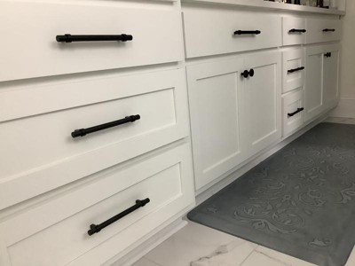 I had new sink and linen closets built for my new bathroom and these knobs closely matched the color of the faucets and other fixtures. They were super easy to install after my construction worker drilled the holes in the wood of the doors and drawers. They are working fine, easy to grab to open a drawer or a door.