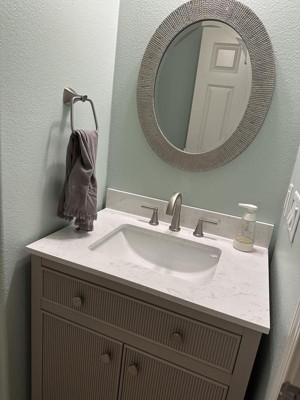 [This review was collected as part of a promotion.] I switched out this hardware in my master bathroom earlier this year, and they make a huge improvement in the look of the cabinets and drawers. The quality, finish, and weight of the hardware is just what I wanted, and I like the simple elegant design