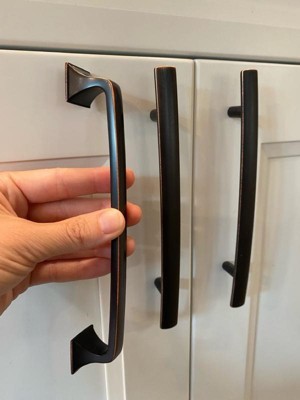 [This review was collected as part of a promotion.] These amerock handles are thin and sleek. Adds a really nice look to my kitchen cabinets . Even had to buy bigger ones for the big drawers. Great product!