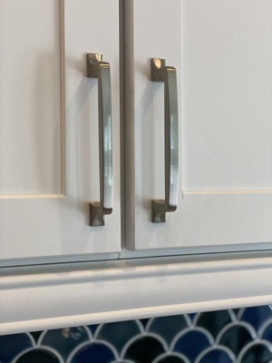 Beautiful satin nickel cabinet pulls!