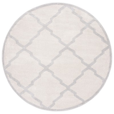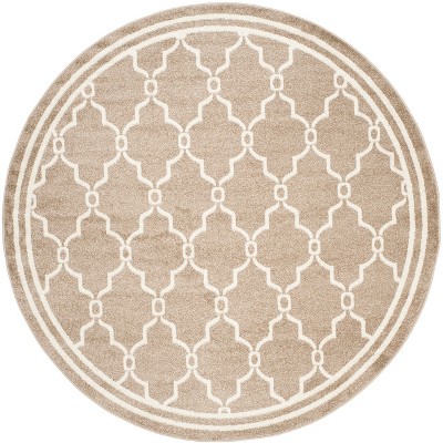 Elevate your space with this elegantly crafted 5' X 5' round area rug, featuring a timeless beige and light grey color palette. The rug's stunning pattern showcases a harmonious blend of lattice and trellis designs, adding both texture and sophistication to your flooring. Constructed with unparalleled precision using power-loomed techniques, this piece boasts a comfortable 3/8" pile height for a soft underfoot experience.