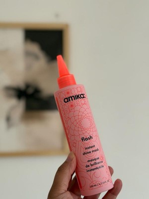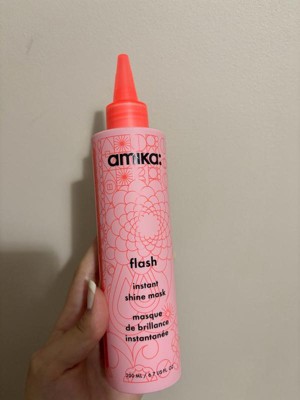 [This review was collected as part of a promotion.] Amika Flash Mask gave me instant shine! Love the scent. Watery texture works fast. Great value, but easy to overuse!, gives instant, silky shine in 60 seconds. The nozzle makes it easy to apply the watery formula