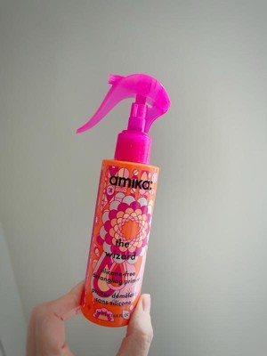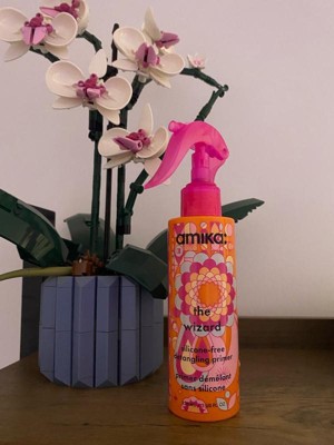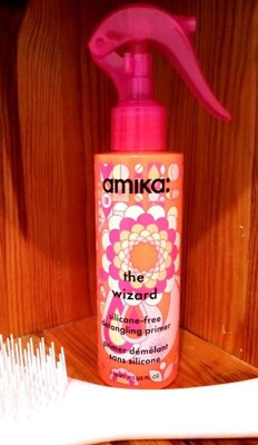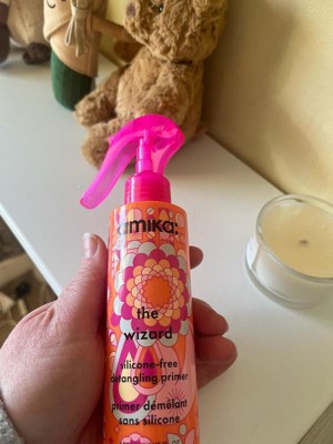[This review was collected as part of a promotion.] I was excited to try this product as I've never used Amika before but I've always wanted to try it. 10/10! Very effective and worked pretty much immediately! My hair is alot thicker at the roots and is harder to detangle but with this spray I didn't have any issues brushing through my hair. It's a great value for money and I would definitely buy again Love the packaging, the colours are very bright and vibrant. I'm not sure what the scent is but it definitely smells nice and like a mens aftershave kind if smell. It does have a slight oily feel to it but that soaked into my hair after a day. The wizard spray is also a heat protectant upto 450ºf which I loved, it is also silicone free.