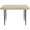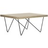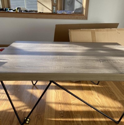 Inspired by a late French designer known for her spin on modern classics, this contemporary wood coffee table is an architectural marvel. Its elegant asymmetric style is perfectly achieved with the pairing of black iron hairpin legs and a light grey finish. Care Instructions: Dust regularly with a soft, dry cloth. Never use oiled or treated cloths on lacquered finishes. Some finishes can be wiped with a damp (not wet) cloth, followed at once by rubbing with a dry cloth to remove fingerprints and smudges. For persistent spots, gently clean with a soft cloth and a solution of water and mild soap, make sure to wipe dry. Use adhesive felt pads, coasters and placemats to protect your furniture.