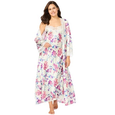 Feel pretty in this flowing lace gown. Easy adjustable chiffon straps with a v-neckline and back. Beautiful 3" contrast scalloped stretch lace with satin tie across back at straps..
