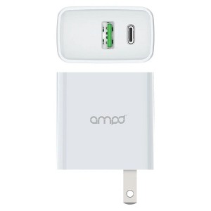 AMPD PD Fast 20W Charger Type C + USB A PortsPortable USB C & A wall charger fit for the latest smartphones or tablets. Dual-port design with USB-C and USB-A, charge two devices at the same time to minimize waiting time and frees you from a cluttered environment.