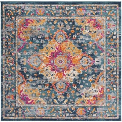 Amsterdam AMS108 Power Loomed Indoor Area Rug - Navy/Turquoise - 5'1"x5'1" - Safavieh