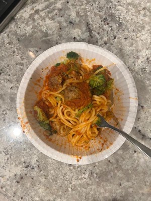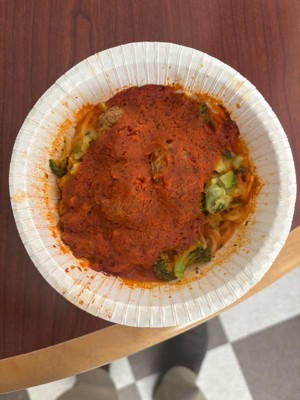 [This review was collected as part of a promotion.] Not bad for a quick lunch. Good size and filled me up. Flavor was good didn’t need to add anything like I need to with some other meals. Tasted better than it looked. Meatball texture was a little off but they tasted good also. I would try again.