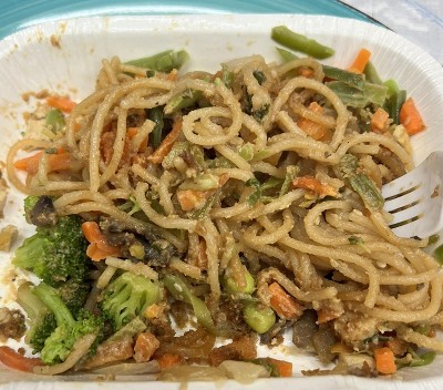 Lots of veggies, tasty and filling. It's a good sized portion and all the veggies make this dish feel healthier than standard frozen meal. It's very peanut-buttery so I wish it was a tiny bit less sweet or more savory. The tofu pieces are tiny. But I keep repurchasing because it is tasty.