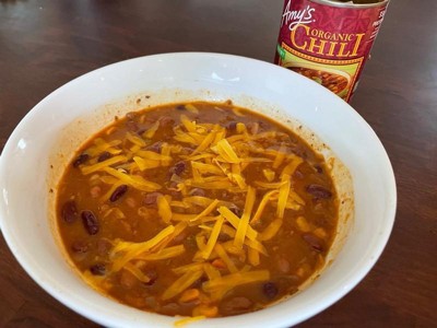 - Heat Amy's chili in a microwave-safe bowl for 2 minutes or heat in a saucepan on the stove and stir occasionally for a hearty, ready-made meal