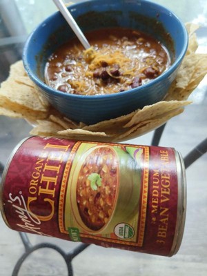 [This review was collected as part of a promotion.] Organic 3 bean vegetable chili is way better than I expected it to be. It has a good flavor and didn't give me heartburn like most chili does. The texture was smooth and no aftertaste. The can was the perfect serving