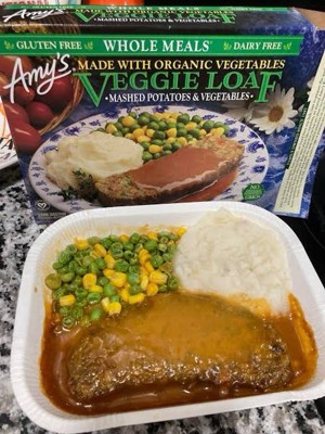 Amy's Veggie Loaf Whole Meal microwave meals are a meatless alternative to an old-time favorite that the whole family can enjoy! This microwave meal comes smothered in gravy with organic mashed potatoes, peas and corn on the side. Our frozen dinners are made with organic ingredients, so you can feel good about serving this vegetarian food as a delicious dinner or lunch. It's certified Kosher, gluten free, dairy free, lactose free and vegan-friendly, making it a great option for those with dietary restrictions. This meal is easy to prepare: simply heat it in the microwave or oven and serve.