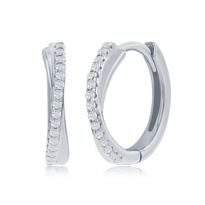 Amy and Annette 14K Gold and Sterling Silver & Simulated Diamond Huggie Hoop Earring