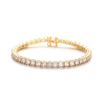 The 14k Gold Genuine Crystal Tennis Bracelet is a beautiful piece of jewelry that exudes elegance and sophistication. This bracelet is crafted from high-quality Gold Plating and is adorned with a sparkling array of genuine crystals.