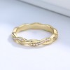 The crossover design of the ring is enhanced by the presence of a crystal at the point where the two bands intersect. The crystal adds a touch of sparkle and glamour to the ring, making it the perfect accessory for a special occasion.