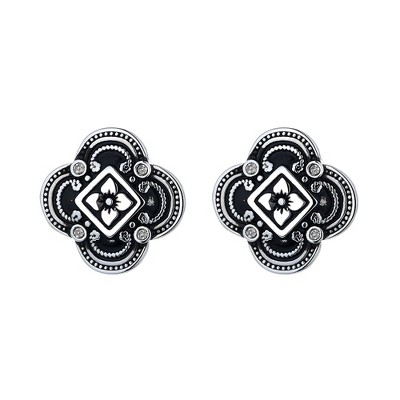 These earrings are a great display of art, and take their place as a classic accessory with a flower shape that's been oxidized for an aged look. They're a favorite among us, too! Show your unique style in these stud earrings. Handcrafted from sterling silver, these floral beauties feature an oxidized look and vintage feel that will complement any outfit. They’re also great for displaying art, making them trendy and modern.