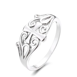 This elegant ring showcases a beautiful scroll cross design, meticulously crafted from genuine sterling silver. It offers a timeless and meaningful accessory that can be worn daily or for special occasions, adding a touch of grace to any outfit. The intricate detailing of the scrollwork provides a sophisticated aesthetic, making it a thoughtful gift for loved ones or a cherished addition to your own jewelry collection. Its classic appeal ensures it complements various styles and preferences, providing a versatile and enduring piece of jewelry.