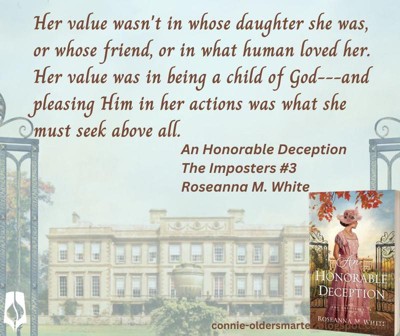 Excellent! The talented pen of author Roseanna M White drew me into this completely captivating story of dangerous secrets and new clients, with the Imposters run by Yates (Lord Yates Fairfax), his sister Lady Marigold Fairfax Livingstone, her husband Sir Merritt Livingstone, and Gemma & Graham Wharton. I loved every minute of it! What a fantastic end of the series, I could not put it down. An Honorable Deception has a compelling mix of historical fiction, danger, mystery, (loved the research that led to more clues), women and children in terrible situations, people with a heart to help, good friends, humor, romance, and depth. I enjoyed seeing the circus friends who have been with the Fairfax family since the beginning. I loved the plot twist with bringing in key characters from a different series in such a perfect way! Yates meets with their newest client, Lady Alethia Barremore, who is shot while leaving their meeting. He wisks Lady Alethia to his country estate where Lady Lavinia Hemming is keeping his sister Marigold company. It was fun to have two women leads (Lady Alethia & Lady Lavinia), who have many similarities, and to watch their journeys unfold, to watch them find their path and purpose. Yates is such a handsome and loveable character and it was great to see his character growth. I highly recommend binge reading this entire Imposters series in order, you will not be able to put them down! Each story has mystery, danger, and good friends who help each other overcome past hurts and find healing in placing their trust in God.