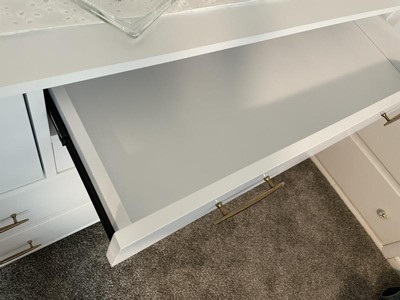 The dresser is absolutely beautiful, especially with the handles. Also love how the top drawers are different sizes. The color is also really nice. Even though it’s a beautiful piece, I’m giving this only a 1 star because of how terrible it is to pull out the drawer and push it back in. You literally have to tug with so much force in order to open and close a drawer. The manufacturer’s didn’t leave any wiggle room for the face of the drawer and cut it the exact size of the space it comes out of making it difficult to pull in and out. Also, the drawer slides are not smooth at all. It’s just surprising how expensive this is for the drawers to be so difficult to pull out. We have already assembled and it’s way too much effort to take apart and return. The top of the dresser also came scratched. We were very careful unboxing so we know that we didn’t dink it. Again, a drawer with this price tag shouldn’t come with terrible drawers and scratches! It also took 6-7 hours for one person to put together. I’m surprised this dresser has so many good reviews.
