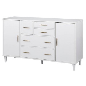 The Ana Mid-Century Modern Buffet by Lifestorey provides perfect organization for any dining room. Multiple storage options with drawers and cabinets in various sizes offers ample space for serving bowls, dishware, glassware and more. Also versatile as a media cabinet in your living space, this cabinet is equipped with convenient ventilation cut-outs for cord management of your electronics.