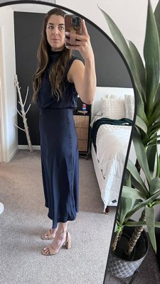 Look and feel your best in this stunning event wear dress! Featuring a maxi length, an asymmetric high round neckline with gathered pleat detail, plus a back neck opening with button close, it's the perfect party dress for any special occasion. Not only does it look fabulous, but it feels as good as it looks too — crafted from a soft satin feel just for extra comfort.