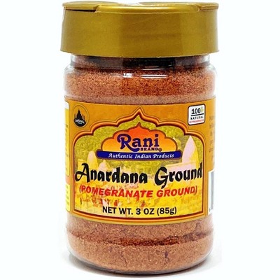 Authentic Indian Spices Anardana comes from the dried seeds of the pomegranate. Native to Southwest Asia, the fruit is both sweet and tangy. In India, the dried seeds are ground down to make a coarse powder used to flavor curries and chutneys. In the Middle East, it is used often to garnish dishes such as hummus, salads and tahini.