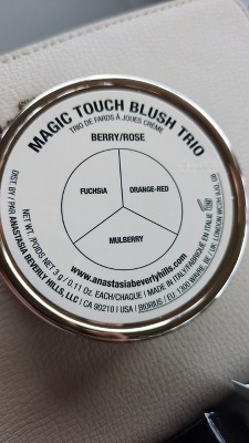[I received this product in exchange for my honest review] The Magic Touch Blush Trio - Berry/Rose by Anastasia Beverly Hills is a nice cream blush that is blendable and buildable! This product is uncented with high pigmentation, so to be fair, a little bit goes a long way! On my skin tone, the product compliments my undertones and isn't too bright on my skin. There is a deep berry color, bubblegum pink and orange-red shade for the color choices. This product is recommended for use by medium to deep skin, which I definitely agree with! The packaging is cute, a circular dish with see-through screw off lid that has 3-conpartments for the 3 different shades. I will definitely be using this product for more makeup looks in the future as it stays in place once blended and the color payoff is fantastic for me. I use very light amounts for this product as I dont want a heavy blush which is barely noticeable on camera, in person it is mote noticeable!