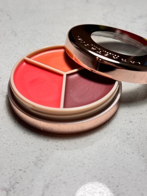 Cloud-like feel. Vivid, matte color. Soft-focus effect. This cream blush trio features 3 vibrant, full-pigment shades enriched with skin-nourishing ingredients like Pomegranate Oil for a healthy-looking flush. The multi-purpose formula for cheeks and lips features a silky, gel-like texture that seamlessly blends with a soft, blurred finish for a flawless, natural look.