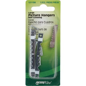 Sawtooth edge eliminates crooked pictures. Anchor wire picture hangers attach to the back of a frame and these hangers are self leveling and easy to install with the nails included. Available in both small and large sizes.