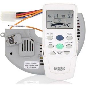 The Anderic FAN-9T with REVERSE key Thermostatic Remote Control Kit is a complete replacement solution for Hampton Bay and Harbor Breeze ceiling fans originally equipped with the FAN-10R receiver. This kit includes the FAN-9T thermostatic remote (with green button) and the FAN-10R receiver, ensuring seamless compatibility for fans that were factory-installed with this receiver. Designed to deliver reliable performance, the FAN-9T remote requires four AAA batteries (not included) and comes with a wall-mount holder for convenient storage.