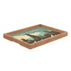 - The Deny trays are 100% sustainable, eco-friendly flat grain amber bamboo wood frame with satin finished printed tray bottom