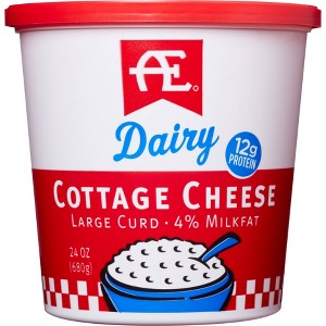 We think AE Cottage Cheese should be a household staple. It's an Iowa thing. This soft white cheese is packed with Protein, and stands alone and is delicious with sweet or savory additions.AE Large Curd Cottage Cheese is made in small batches using a special recipe that takes almost 10 hours from start to finish to bring out the signature flavor, texture and creaminess. AE Cottage Cheese is a great swap for some full fat cheeses, and we like to add it to twice-baked potatoes, mac 'n cheese and pastas.