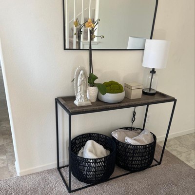 Sleek and streamlined with a touch of warmth, this Andey Console Table redefines modern minimalism. Andeys open black metal frame is given additional intrigue by a brown tray-style wood top, making it perfect for elevating any rooms decorative depth.