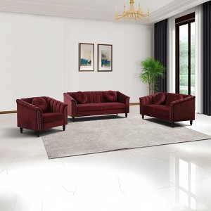 Elevate your living space with this sophisticated sofa set, combining luxurious materials and exquisite craftsmanship. Made with premium flannel fabric, this sofa is breathable, mold-proof, and scratch-resistant, ensuring a comfortable and long-lasting seating experience. The solid wood frame provides robust support, while the double-layer spring structure and high-density sponge deliver superior comfort and ergonomic balance. Featuring hand-crafted point-pulling techniques, this set showcases smooth textures and elegant detailing, creating a stunning focal point. Its sturdy synthetic metal components ensure exceptional stability and durability for years of enjoyment.