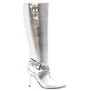 Step into the spotlight with our chic Andrea knee high boots. These elegant boots are designed for the fashion-forward woman who loves to make a statement. Featuring a stunning silver color, high heel, and pointy toe, these boots are the perfect combination of luxury and style. The side zipper ensures a secure and comfortable fit, while the stiletto heel adds a touch of glamour to any ensemble. Elevate your look and exude confidence with the Andrea knee high boots - the ultimate accessory for the modern woman.